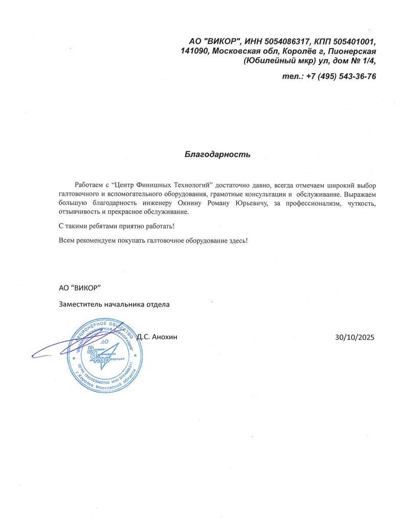 Работаем с "Центр Финишных Технологий" достаточно давно, всегда отмечаем широкий выбор галтовочного и вспомогательного оборудования, грамотные консультации и обслуживание. Выражаем большую благодарность инженеру Окнину Роману Юрьевичу за профессионализм, чуткость, отзывчивость и прекрасное обслуживание.